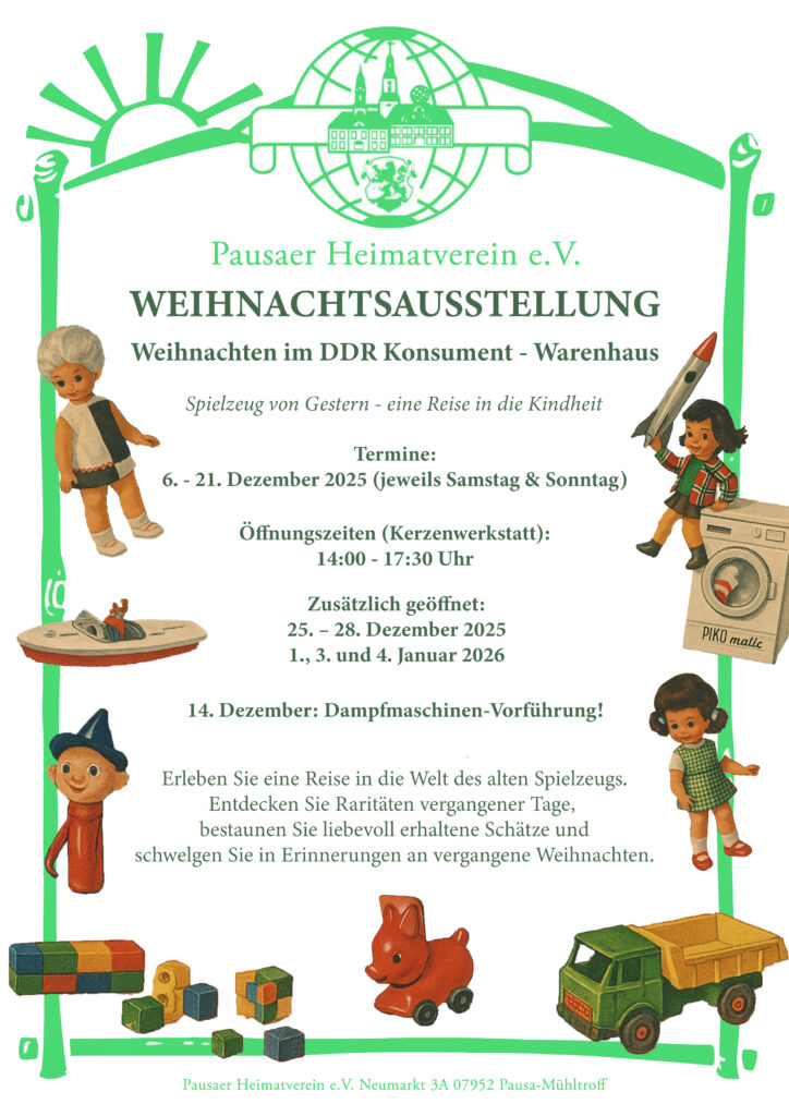 Auch in diesem Jahr laden wir alle Besucher – ob Groß oder Klein – in die Räume des Pausaer Heimatecks ein.